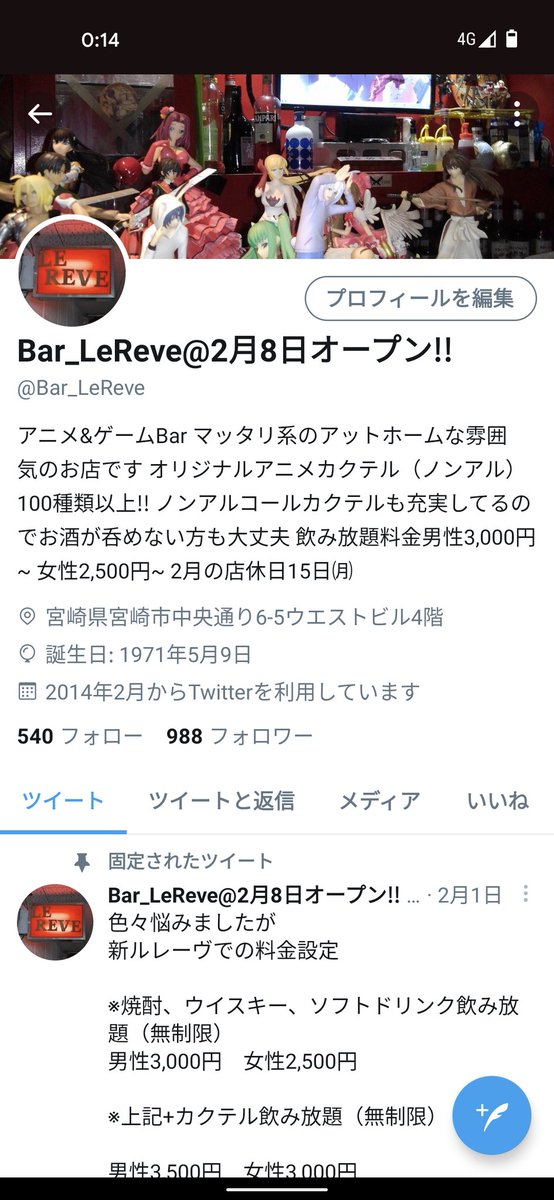 The latest tweets from @nightmiyazakiBuber – BlueOcean Buberではゲーム系クリエイター・Youtuberと共に ゲーム業界を盛り上げるため、 マネジメントやタイアップ案件、 イベントやメディア出演の紹介など、 クリエイターのみなさんを幅広くにサポートしています。 所属クリエイター宮崎 アニメ バー maniac bar KEEPON 宮崎県, 宮崎市 高松町 129 MGビル 3階 KEEPON